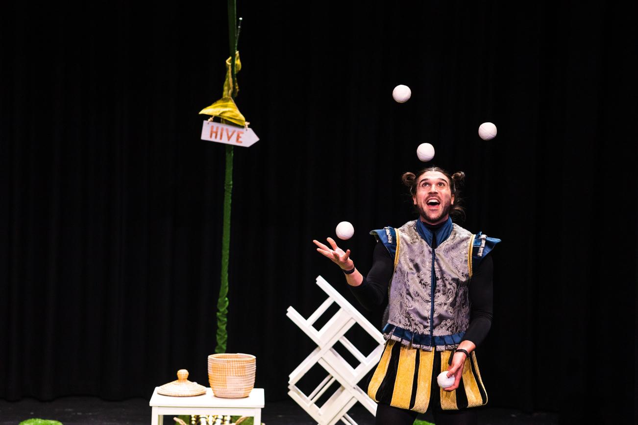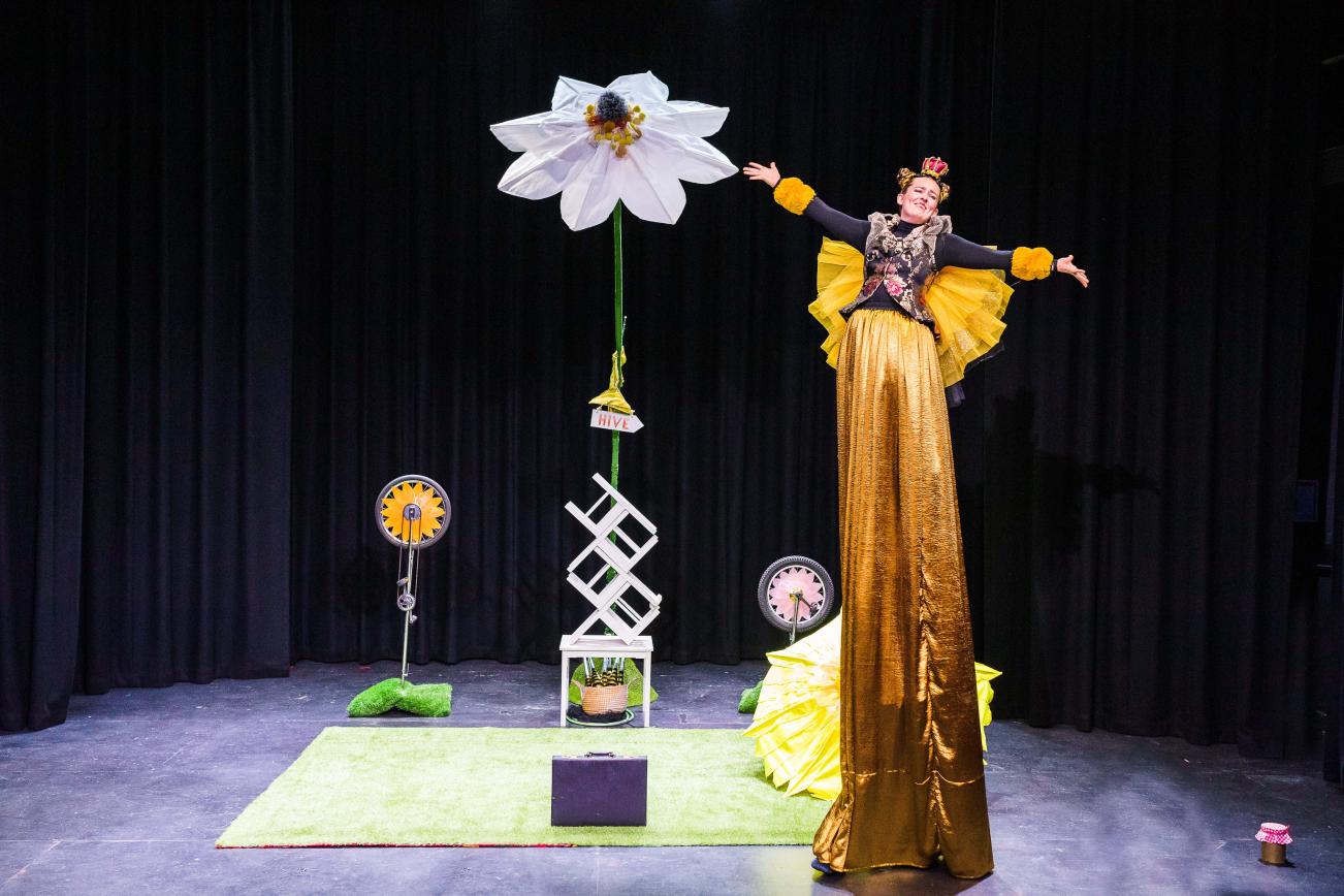 A Bee Story is a uniquely Australian physical theatre show for children and families incorporating a kaleidoscope of circus, acrobatics, dance, and live music. It tells the story of Queen Bee and Worker Bee who must work together to rebuild their hive after being destroyed by a bushfire. But things never quite go to plan…
