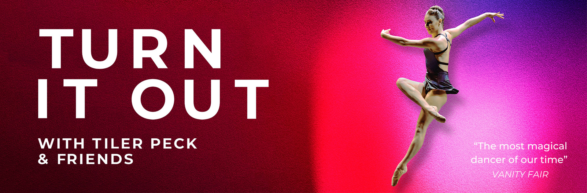 New York City Ballet principal dancer Tiler Peck presents Turn It Out with Tiler Peck & Friends. With her personal touches on the evening, Peck has assembled many of today's most exciting dance artists for an innovative program.